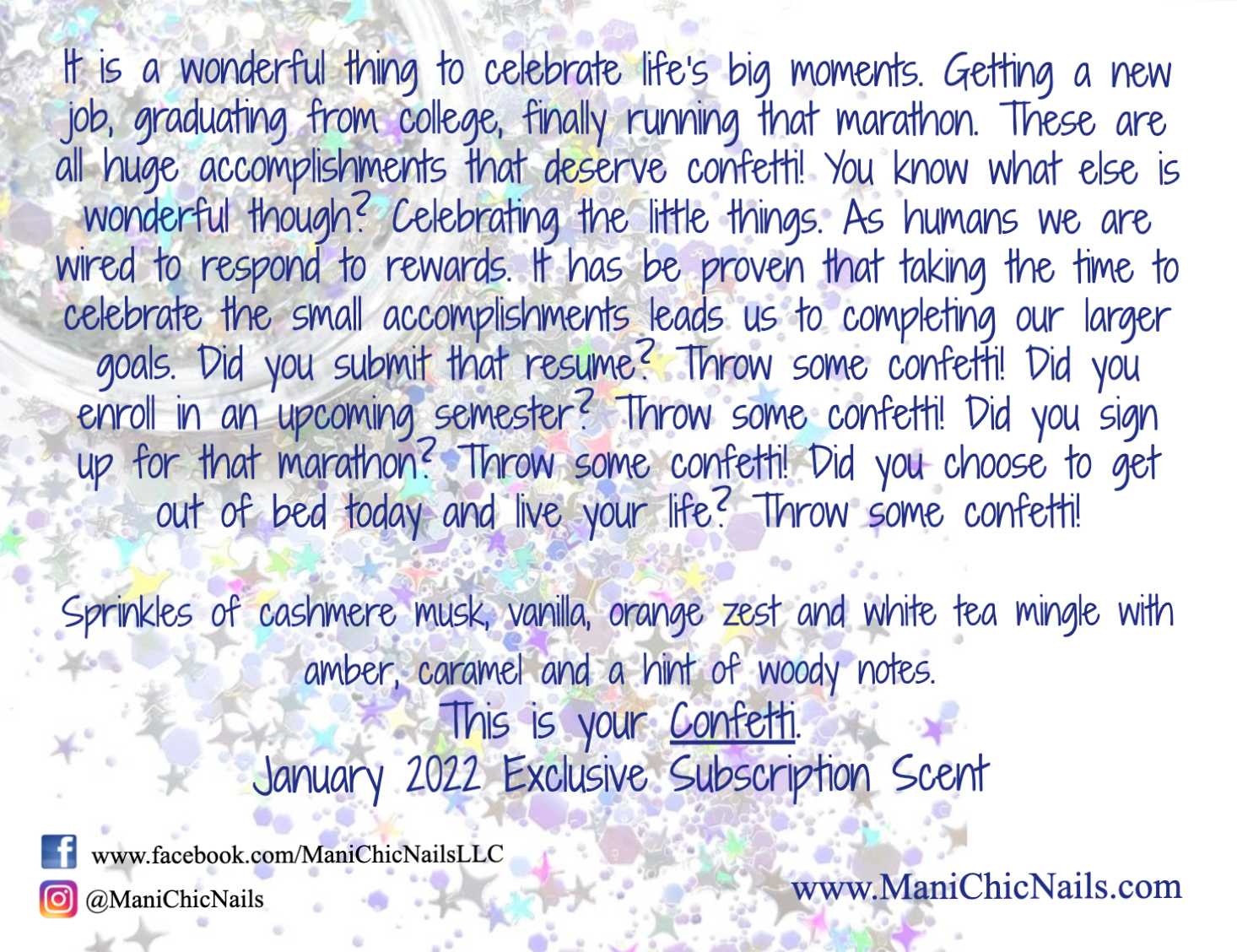 It is a wonderful thing to celebrate life's big moments. Getting a new job, graduating from college, finally running that marathon. These are all huge accomplishments that deserve confetti! You know what else is wonderful though? Celebrating the little things. As humans we are wired to respond to rewards. It has be proven that taking the time to celebrate the small accomplishments leads us to completing our larger goals. Did you submit that resume? Throw some confetti! Did you enroll in an upcoming semester? Throw some confetti! Did you sign up for that marathon? Throw some confetti! Did you choose to get out of bed today and live your life? Throw some confetti!